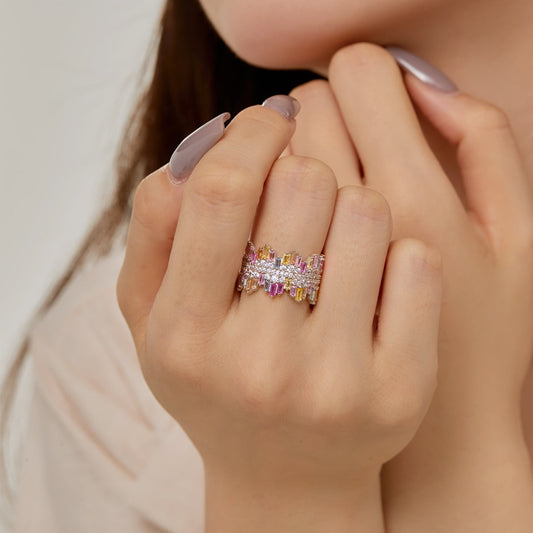 [Goodv]Luxurious Colorful Radiant Cut Daily Ring