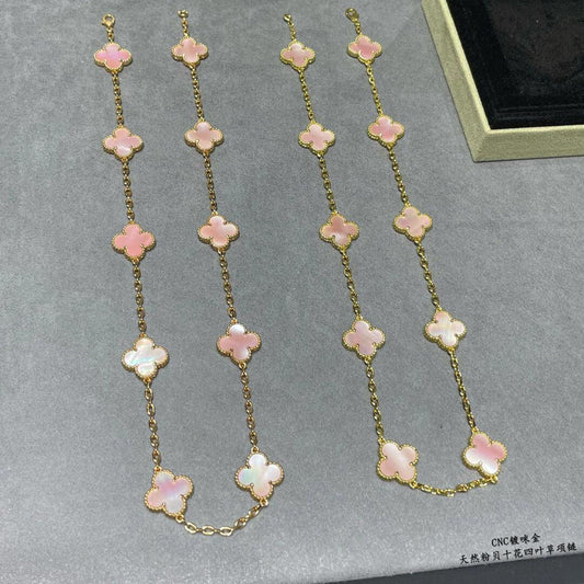 [BIJOUX]CLOVER 10 MOTIFS PINK MOP NECKLACE